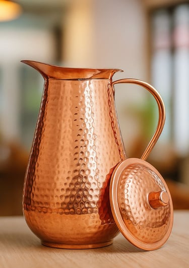 Copper has natural antibacterial and antiviral properties, making it ideal for storing and drinking water. According to Ayurvedic tradition, drinking water from a copper vessel helps balance the body’s three doshas and promotes overall well-being.